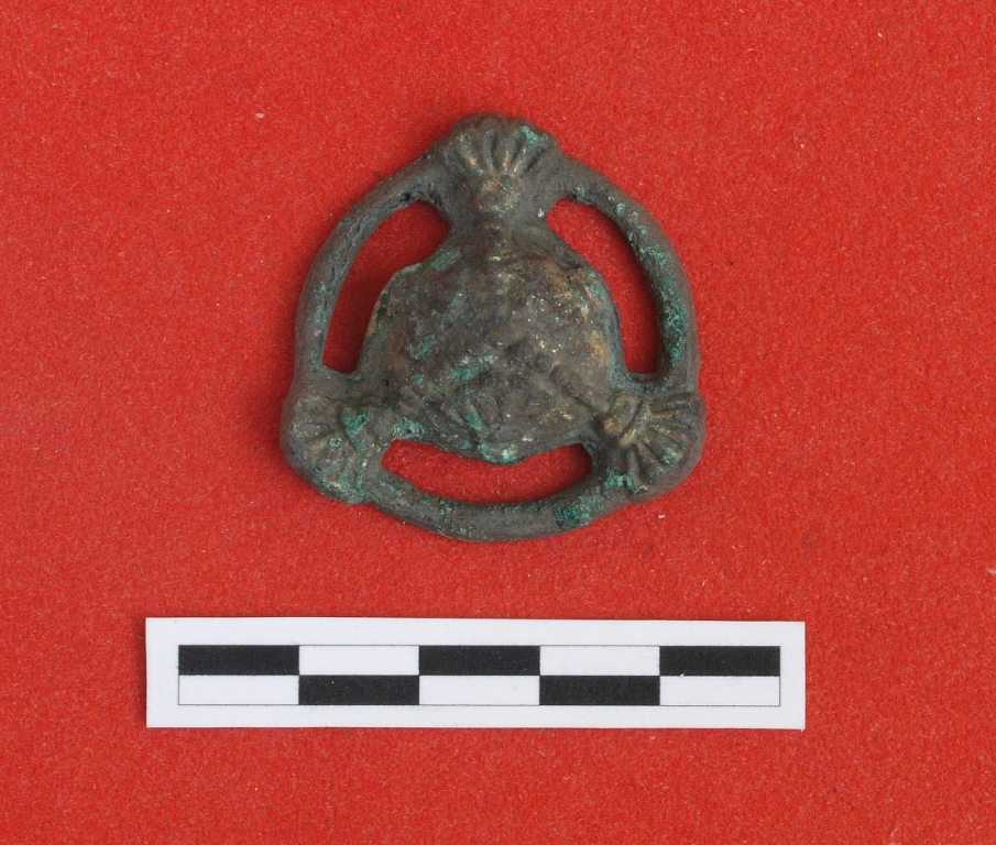 Бронзовый тройник – распределитель ремней конской упряжи (эпоха средневековья), обнаруженный на территории распахиваемого могильника (Краснозёрский район Новосибирской области)